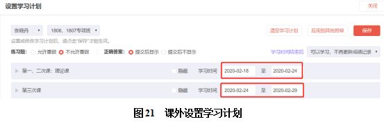 除了课堂上采用限时学习、抢答等方式督促学生,在课外,本人常采用设置学习计划的方式督促学生及时预习及复习,并定期把每人的学习进度截屏给全班。一方面,学生如果不及时上网收看,过期后就无法学习。另一方面,全班同学学习进度的高度公开化明确展示了各位同学的学习积极程度。通过上述这些途径,无形中增加了学生学习的主动性。