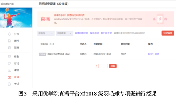 在充分利用学院购买的优学院平台进行教学的同时,本人还广泛借鉴其他平台进行教学,如welink, 腾讯会议等。为更好地监督学生上课状态及投入情况,以及检查学生技术动作的规范性,经过比较,本人主要选择腾讯会议,辅以优学院进行授课。