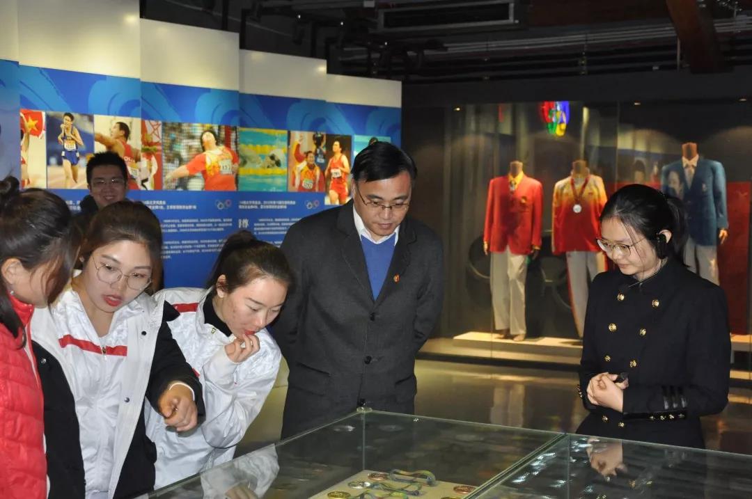 师生着重参观了天津籍运动员在历届奥运会上所获奖牌奖杯的复制品,以及陈一冰、佟文、魏秋月等天津体育名将捐赠给博物馆的个人运动装备。天津体育辉煌的战绩,激励鼓舞着每一位参观者,坚定了大家作为体育人,建功立业新时代,为体育事业发展在谱新篇的决心。
