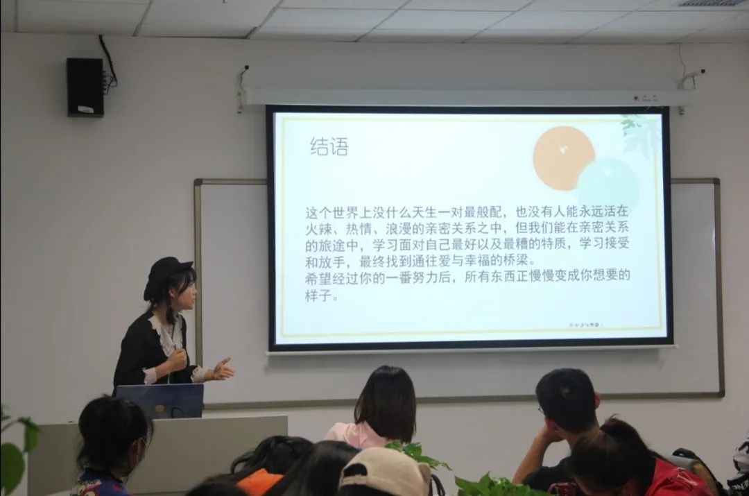 世间的爱情、友情与亲情都需要用心去维护和经营,许帆同学分享的一本关于情感生活的读物《亲密关系》,正是对这个问题的解答,让同学们了解到如何跨越自我障碍的门槛,用爱酿造幸福秘方。在三位同学的交流中,现场的同学们与书籍携手同行,开启了丰富心灵的美好旅程。