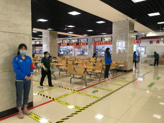 学生骨干积极参与到餐厅、教学楼等服务岗位,进行体温测量、秩序维护、引导和提醒广大师生遵守疫情期间学校规定。突击队队员不辞辛苦,每天按时到岗,真正发挥出学生骨干的带头模范作用。