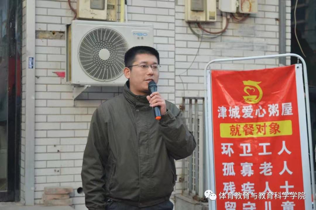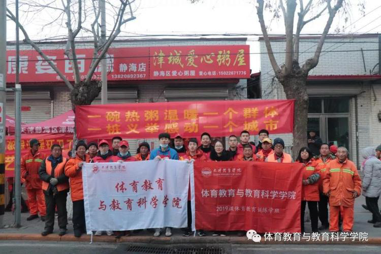 12月28日晨,体育教育与教育科学学院体育教育训练学专业研究生一行10人,由学院辅导员安明焘带队往静海区“爱心粥屋”开展慰问环卫工人、提供免费早餐志愿服务。这是本学期学院第4次派出学生志愿者参与相关活动。