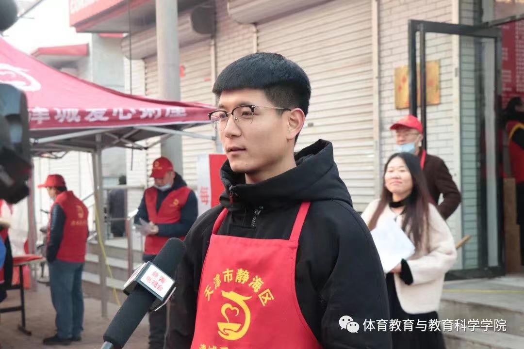 静海区广播电视台对活动进行了报道。我学院2019级硕士研究生、校团委学生兼职副书记程俊鑫接受了采访。程同学表示,能够全程参与到这项志愿活动当中,非常荣幸,更深受教益。在今后的学习和工作中,一定要以“爱心粥屋”弘扬的服务奉献精神为指引和动力,培养锻炼爱岗敬业、吃苦耐劳的精神品质,并动员更多的同学参与到服务活动当中,将这一份爱心火种传递下去,助力全体同学思想道德修养和精神品质提升。