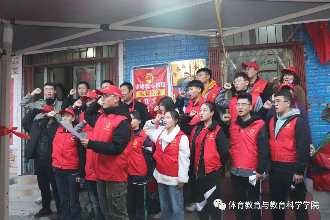 为落实“不忘初心、牢记使命”主题教育活动具体要求,扎实推进主题教育支部开展活动“六个一”任务目标实现,培养师生党员的志愿服务精神和联系群众能力,11月9日晨,体育教育与教育科学学院部分师生党员在党委副书记刘泽林老师的带领下,前往静海区“爱心粥屋”开展志愿服务公益活动。
