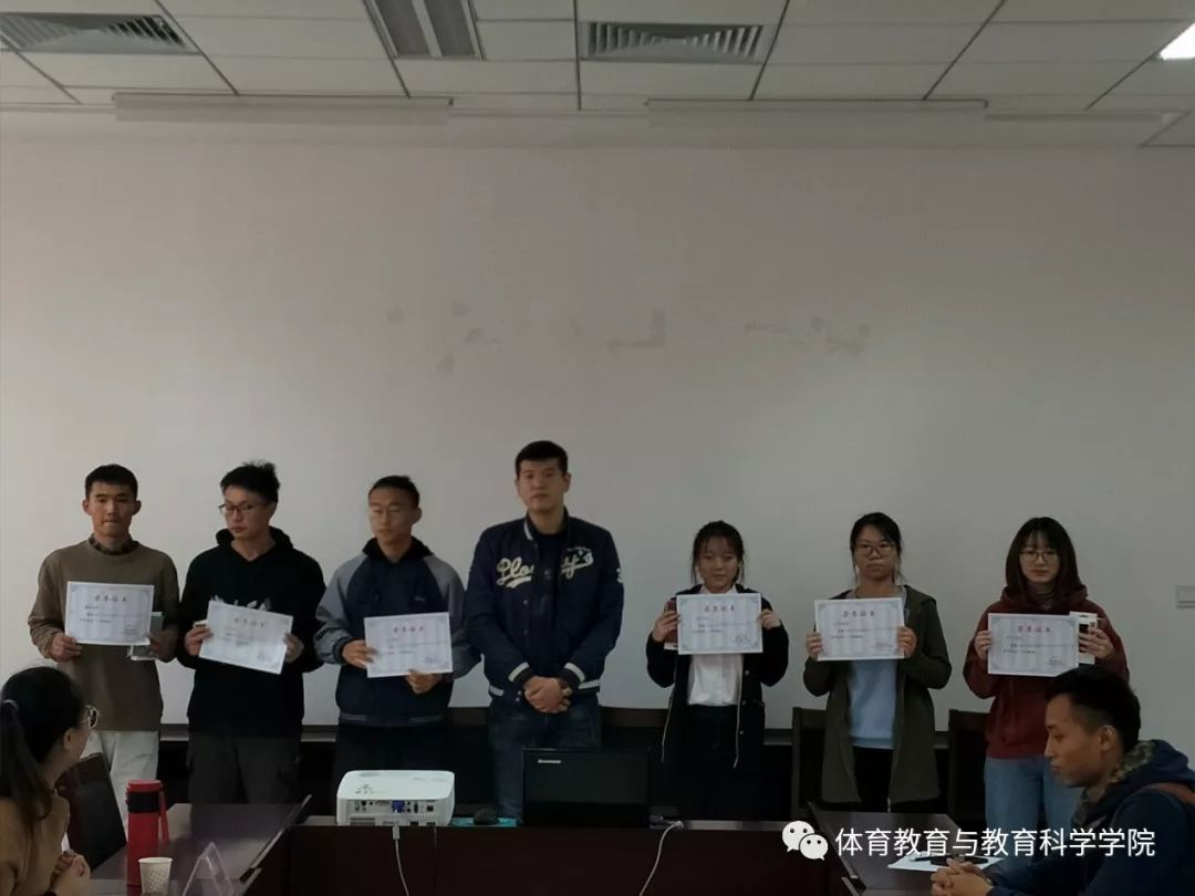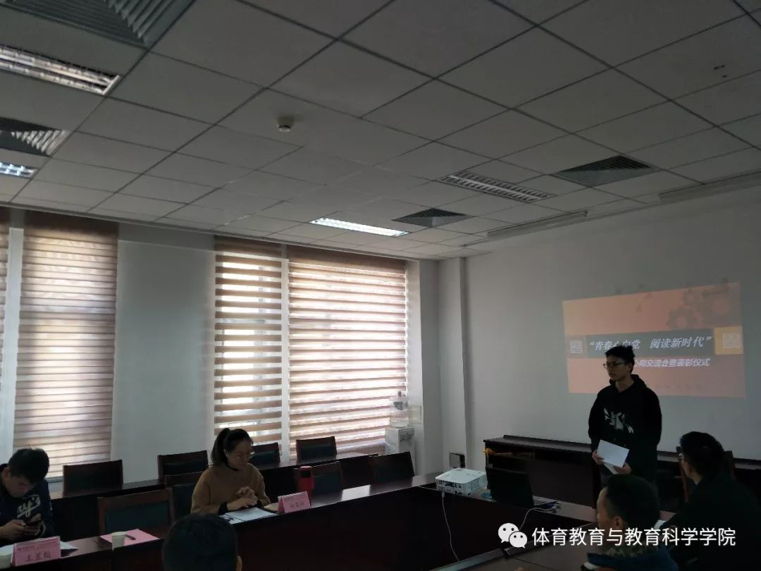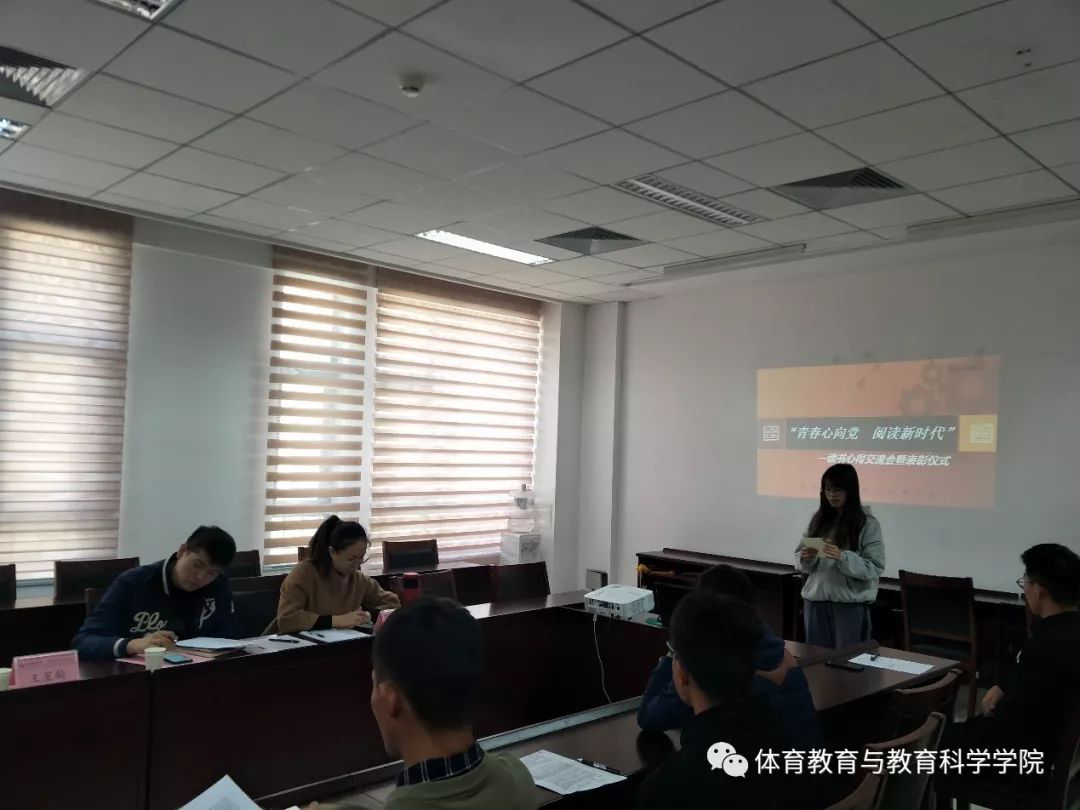 10月28日上午,体育教育与教育科学学院在特教楼507举行了“青春心向党 阅读新时代”读书活动心得交流会暨表彰会。辅导员杨奕娇老师、王星翰老师出席了此次活动。活动由学生孔垂鑫主持。