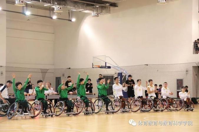 为了培养未来合格的体育教师和特教教师,体育教育与教育科学学院和马克思主义学院注重在各类实践活动中让同学们感受和体会思政教育的润物无声。此次活动借助了天津残奥会和特奥会的有利契机,邀请广东轮椅篮球女队现役国家轮椅篮球女队教练员陈琦携队员及广东轮椅篮球男队于8月30日上午来到天津体院,教练员和队员们用实际行动为体教和特教专业的学生上了生动的一课。校党委副书记、校长吉承恕,体育教育与教育科学学院党委书记马桂霞,院党委副书记刘泽林,马克思主义学院的刘秀英老师,体教杨巧静、肖翔老师及特教专业老师出席了活动。