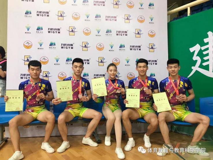 经过激烈的角逐,黄瓜视频 健美操队取得历史性突破,其中体育教育与教育科学学院2016级学生张种、杨滨和2018级卜一凡、高立文、郑承盛获得成年组精英组五人操第三名的好成绩。同时,张种、卜一凡、高立文、郑承盛4名同学获得国家级运动健将称号,为天体争得荣誉。