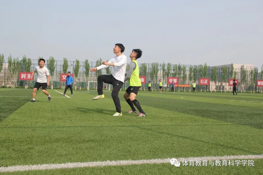 万物复苏,艳阳高照,微风习习,在绿草如茵的足球场体育教育与教育科学学院再一次举行了主题为“放飞足球梦”的师生共建活动。本次活动于2019年4月16日在十一人制足球场举行,此次活动特别邀请了运动训练科学学院的学生王海博和解正正;以及来自马来西亚的留学生黄书峰。本次活动由文体部李斌主持。