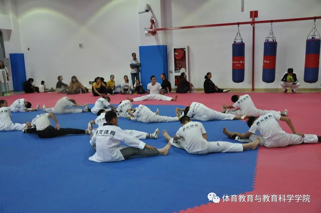 跆拳道专业,散打专业的优秀学生对小学生进行教学和指导。