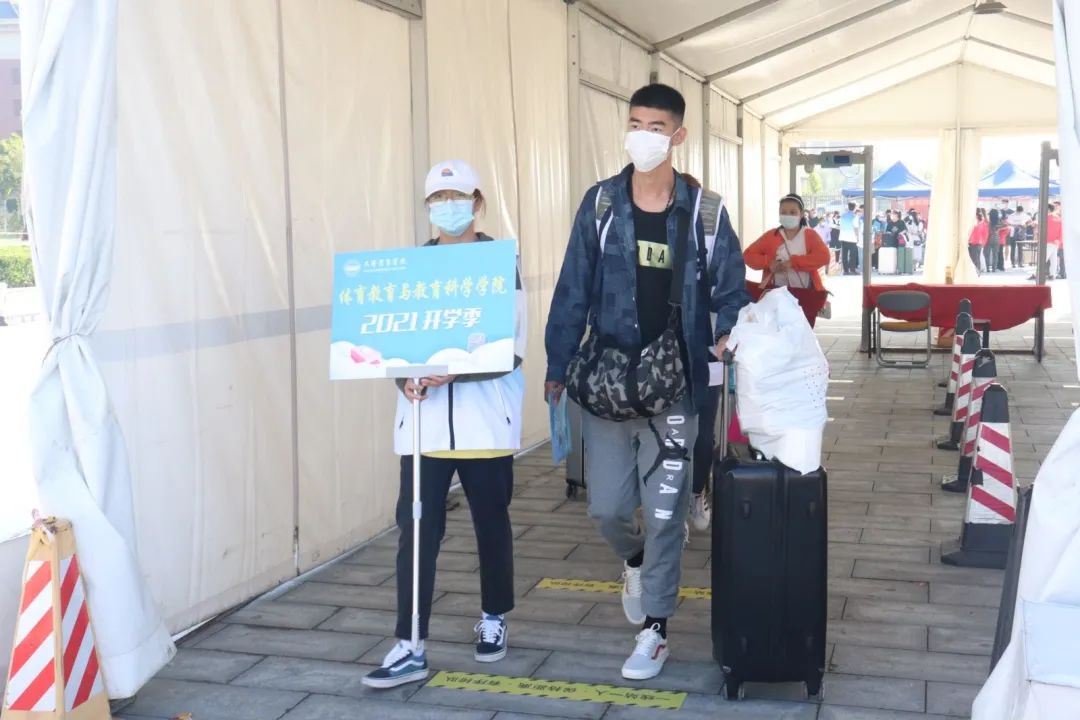 迎新现场,志愿者热情接待新同学,提供报到引导、行李搬运、解答咨询等服务。