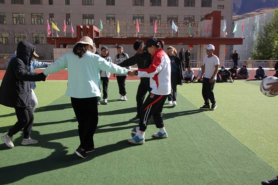 五位术科老师分别对体操、足球、篮球、乒乓球项目进行了理论授课以及实践练习,理论课程以介绍不同运动项目的起源、发展以及相关规则为主,使参加培训的教师先行建立了对不同运动项目的初步了解,实践内容主要以体验为主,感受了不同运动运动项目带来的运动乐趣,在完成了技能培训的同时,将游戏的形式融入在练习中,提高了参训人员学习的积极性。两位体操老师还专门利用西藏音乐编排了一套《雪域高原韵律操》来丰富他们的大课间体育活动。