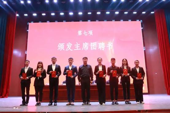 第五项议程——为学生会主席、学生业余训练俱乐部主任颁发聘书