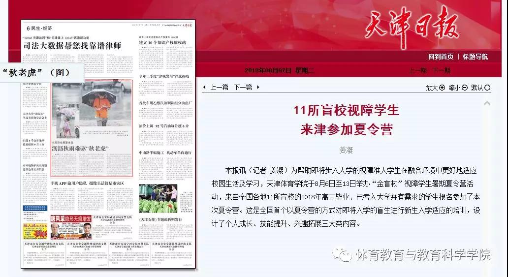 2018年8月7日,天津日报第六版以“11所盲校视障学生来津参加夏令营”为题,对本次活动进行了报道。