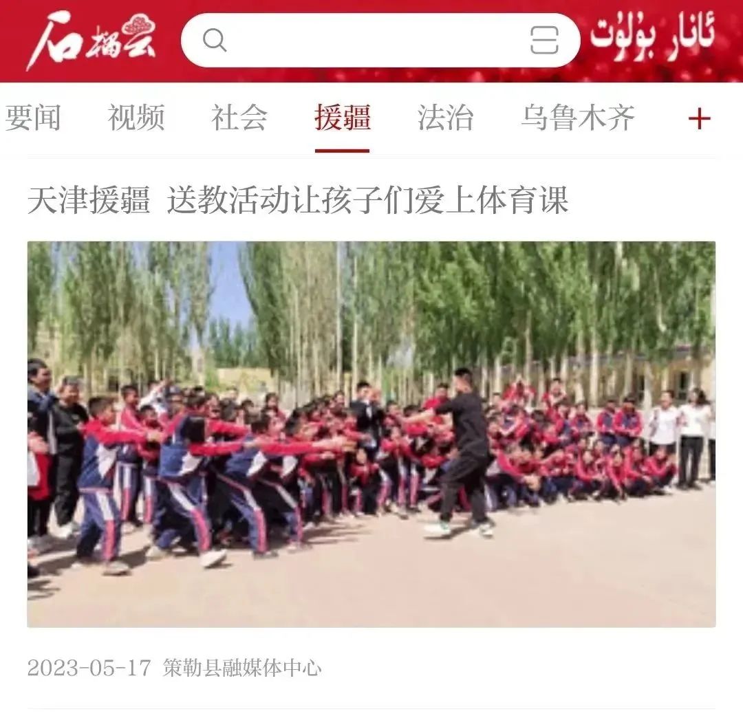近日,新疆日报官方客户端“石榴云”在援疆专栏,报道黄瓜视频 第三批赴新疆和田地区实习支教团联合策勒县第一小学前往策勒县博斯坦乡中心小学,开展体育送教活动情况。相关短视频在策勒县融媒体中心同步播发。黄瓜视频 支教团受到众多网友赞扬。