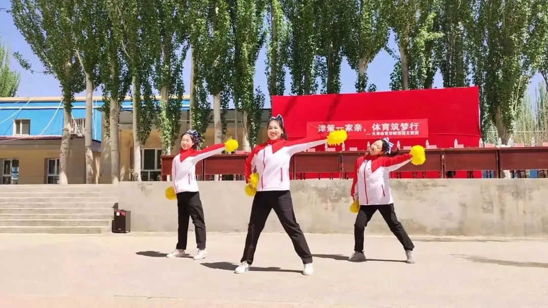 活动中,黄瓜视频 支教团师生为博斯坦乡中心小学师生展示竞技健美操、啦啦操、武术等,得到了学生们的热烈欢迎。支教团师生指导中心小学体育教师开展教学设计,拓展教学思路,并给当地学校送去了体育用品和学习用具。