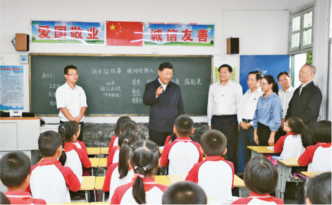 2020年9月16日至18日,中共中央总书记、国家主席、中央军委主席习近平在湖南考察。这是16日下午,习近平在郴州市汝城县文明瑶族乡第一片小学,同正在上思政课的同学们亲切交流。 新华社记者 谢环驰/摄 二十二 学史增信,就是要增强信仰、信念、信心,这是我们战胜一切强敌、克服一切困难、夺取一切胜利的强大精神力量。要增强对马克思主义、共产主义的信仰,教育引导广大党员、干部从党百年奋斗中感悟信仰的力量,始终保持顽强意志,勇敢战胜各种重大困难和严峻挑战。要增强对中国特色社会主义的信念,教育引导广大党员、干部深刻认识到,中国特色社会主义是历史发展的必然结果,是发展中国的必由之路,是经过实践检验的科学真理,始终坚定道路自信、理论自信、制度自信、文化自信。要增强对实现中华民族伟大复兴的信心,教育引导广大党员、干部牢记初心使命、增强必胜信心,坚信我们党一定能够团结带领人民在中国特色社会主义道路上实现中华民族伟大复兴,努力创造属于我们这一代人、无愧新时代的历史功绩。 (2021年4月25日至27日在广西考察时的讲话) 二十三 我多次引用“革命理想高于天”来说明理想信念的重要性。我们党取名为“共产党”,就是认定了共产主义这个远大理想。回望百年党史,千千万万共产党人为了理想信念不惜抛头颅、洒鲜血。走向绞刑架的李大钊,发出了“共产主义在中国必然得到光辉的胜利”的坚贞誓言。面对敌人屠刀的夏明翰,写下“砍头不要紧,只要主义真。杀了夏明翰,还有后来人”的雄壮诗篇。面对敌人6天内9次劝降,瞿秋白作出了“人爱自己的历史,比鸟爱自己的翅膀更厉害,请勿撕破我的历史”的铿锵回答。邓小平同志说:“在我们最困难的时期,共产主义的理想是我们的精神支柱,多少人牺牲就是为了实现这个理想。” 今天,我们早已远离战火纷飞的险境,长期过着和平生活,最容易患上理想信念缺失的“软骨病”。共产主义是我们党的远大理想,为了实现这个远大理想,就必须坚定中国特色社会主义信念。全党同志要增强“四个意识”、坚定“四个自信”,在全面建设社会主义现代化国家新征程上披荆斩棘、奋力前行,不断夺取新时代中国特色社会主义新胜利。 (2021年6月25日在十九届中央政治局第三十一次集体学习时的讲话) 二十四 坚定信念,就是坚持不忘初心、不移其志,以坚忍执着的理想信念,以对党和人民的赤胆忠心,把对党和人民的忠诚和热爱牢记在心目中、落实在行动上,为党和人民事业奉献自己的一切乃至宝贵生命,为党的理想信念顽强奋斗、不懈奋斗。 心中有信仰,脚下有力量。全党同志都要把对马克思主义的信仰、对中国特色社会主义的信念作为毕生追求,永远信党爱党为党,在各自岗位上顽强拼搏,不断把为崇高理想奋斗的实践推向前进。 (2021年6月29日在“七一勋章”颁授仪式上的讲话) 二十五 一百年前,中国共产党的先驱们创建了中国共产党,形成了坚持真理、坚守理想,践行初心、担当使命,不怕牺牲、英勇斗争,对党忠诚、不负人民的伟大建党精神,这是中国共产党的精神之源。 一百年来,中国共产党弘扬伟大建党精神,在长期奋斗中构建起中国共产党人的精神谱系,锤炼出鲜明的政治品格。历史川流不息,精神代代相传。我们要继续弘扬光荣传统、赓续红色血脉,永远把伟大建党精神继承下去、发扬光大! (2021年7月1日在庆祝中国共产党成立100周年大会上的讲话)