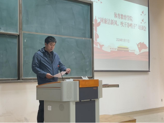 党委、纪委组织开展“树廉洁新风,吹干净哨子”培训会,党委书记田向国主持,学院全体教职工参会。