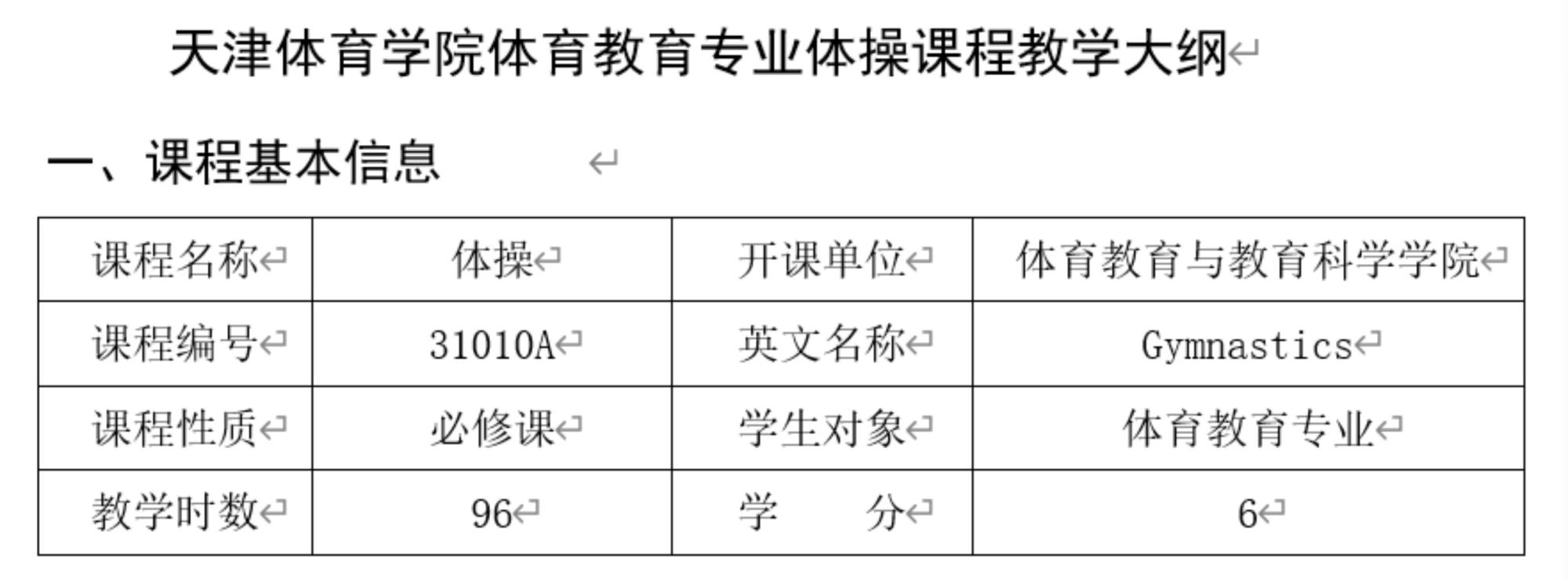 《体操》课程以教授队列队形和徒手体操、轻器械体操等基本知识,以及竞技体操中的单杠、双杠、技巧、跳跃等四个项目的基本动作为内容,是体育教育专业学生的必修课程。